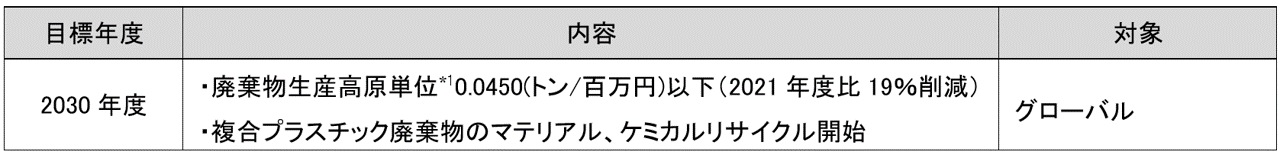 このたび新たに環境ビジョンを制定するとともに、カーボンニュートラルの達成を2050年度目標に、また循環型社会の達成に向けて、廃棄物削減と複合プラスチックのリサイクル開始を2030年度目標に設定しました。