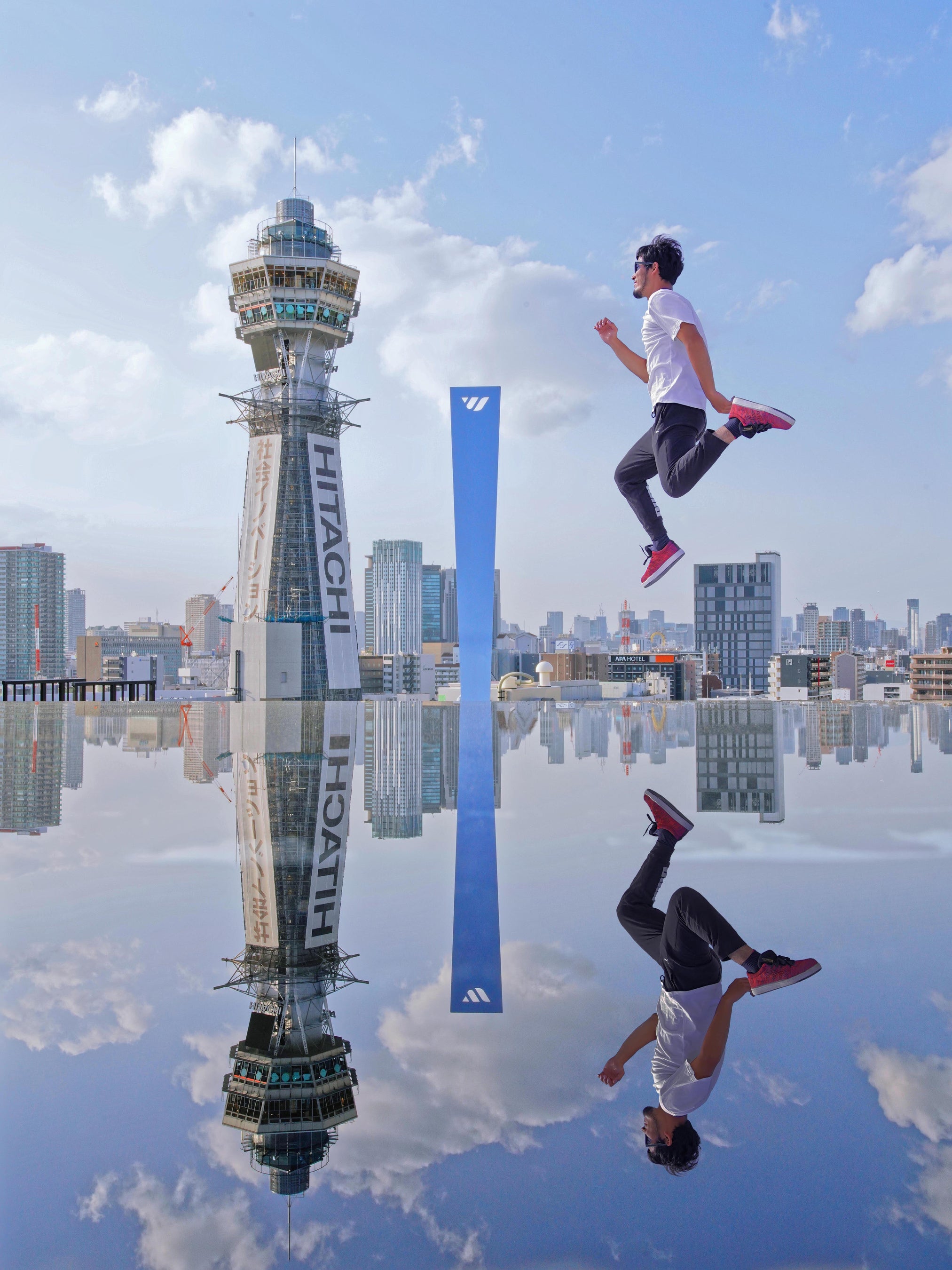 通天閣をバックにウユニ塩湖のような写真が撮れる!Willows Hotel 大阪新今宮屋上の「ツーてんかくショット」がリニューアルオープン