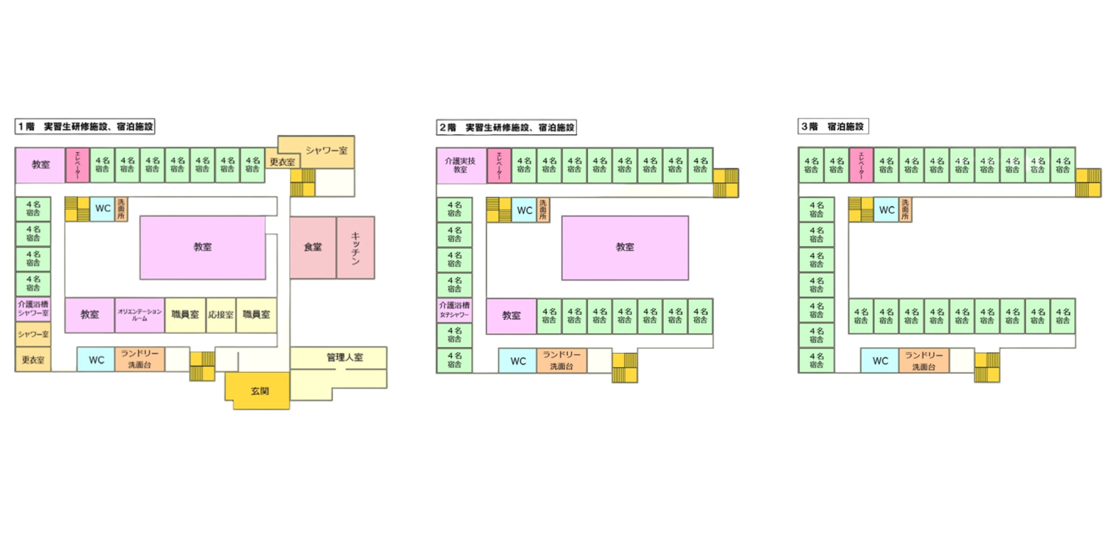 施 設:教室・居室・キッチン・シャワー室・事務室・応接室・男女別トイレ