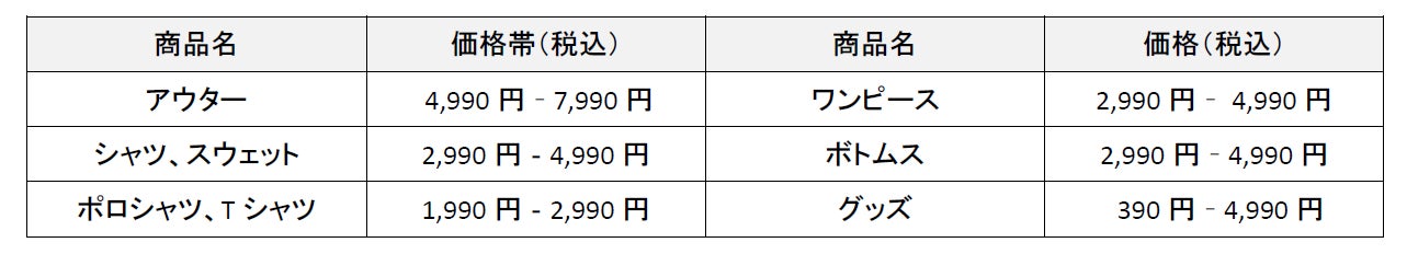 WOMEN 14アイテム/MEN 15アイテム/グッズ3アイテム(バッグ、ソックス、キャップ)