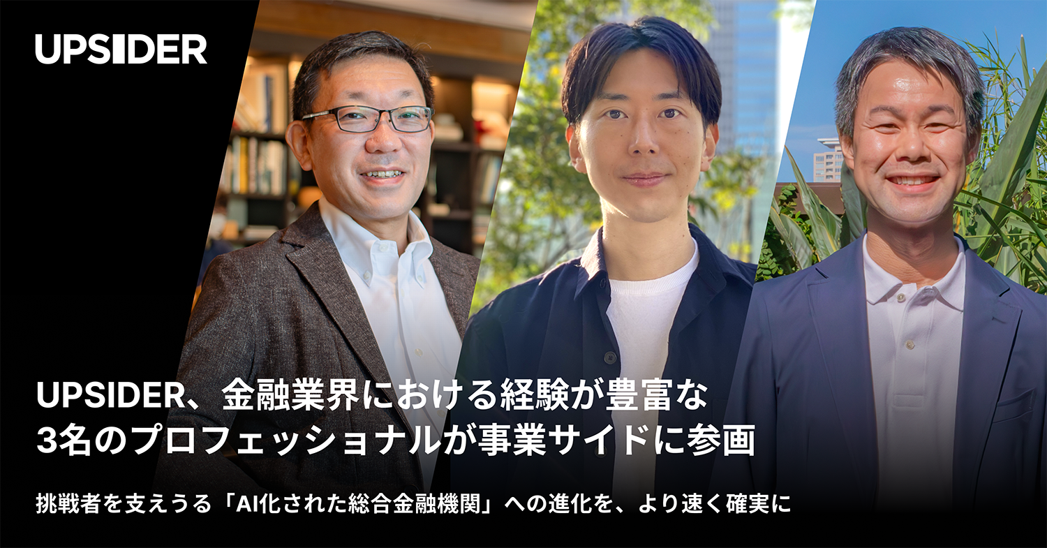 UPSIDER、金融業界における経験が豊富な3名のプロフェッショナルが事業サイドに参画