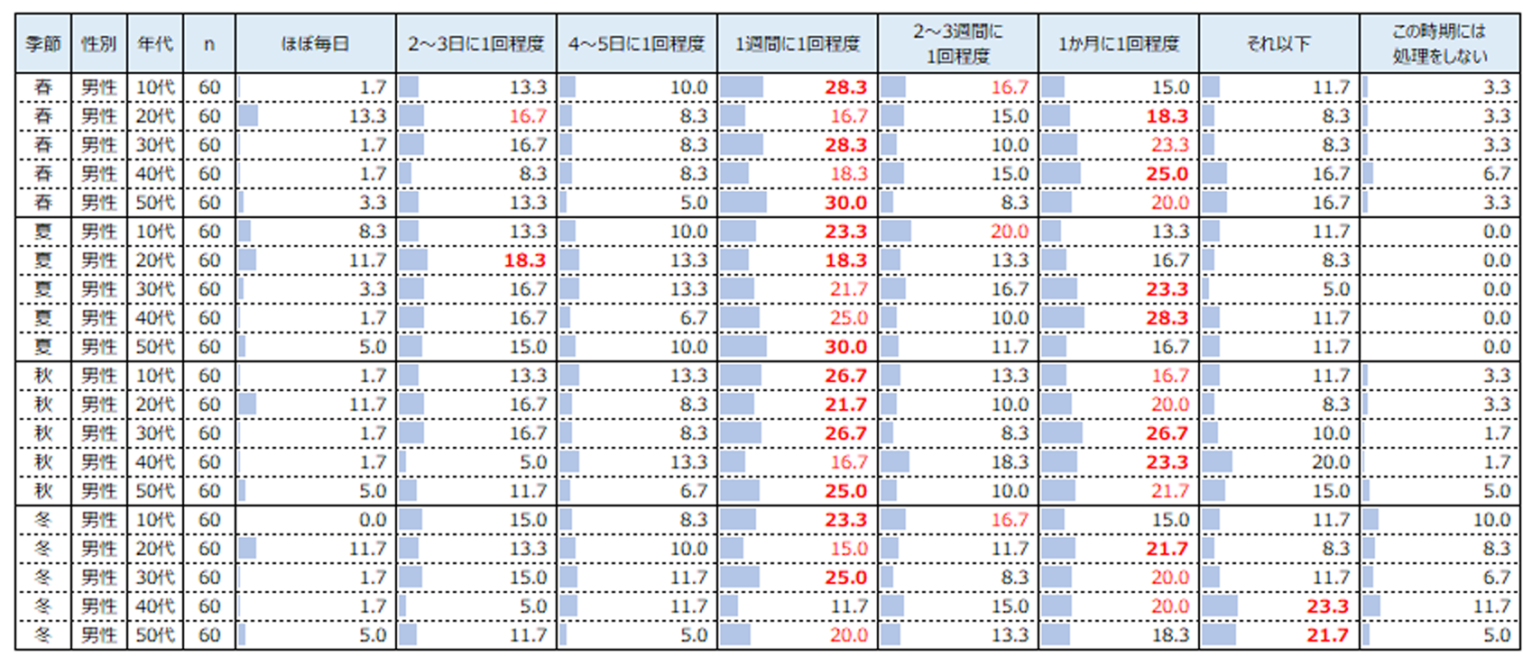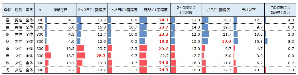 ~秋冬のケア頻度は男女共に週1回くらい 部活・サウナ・ジム等のため継続も~