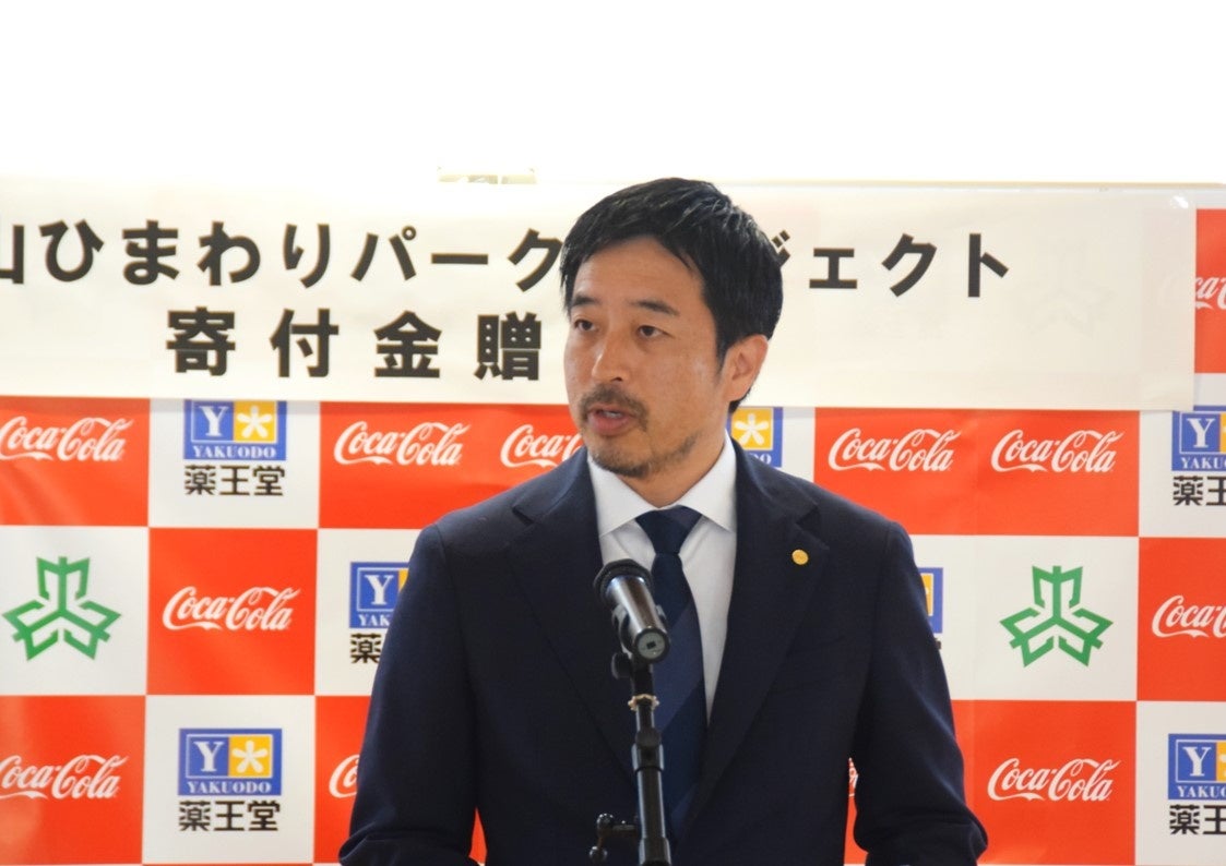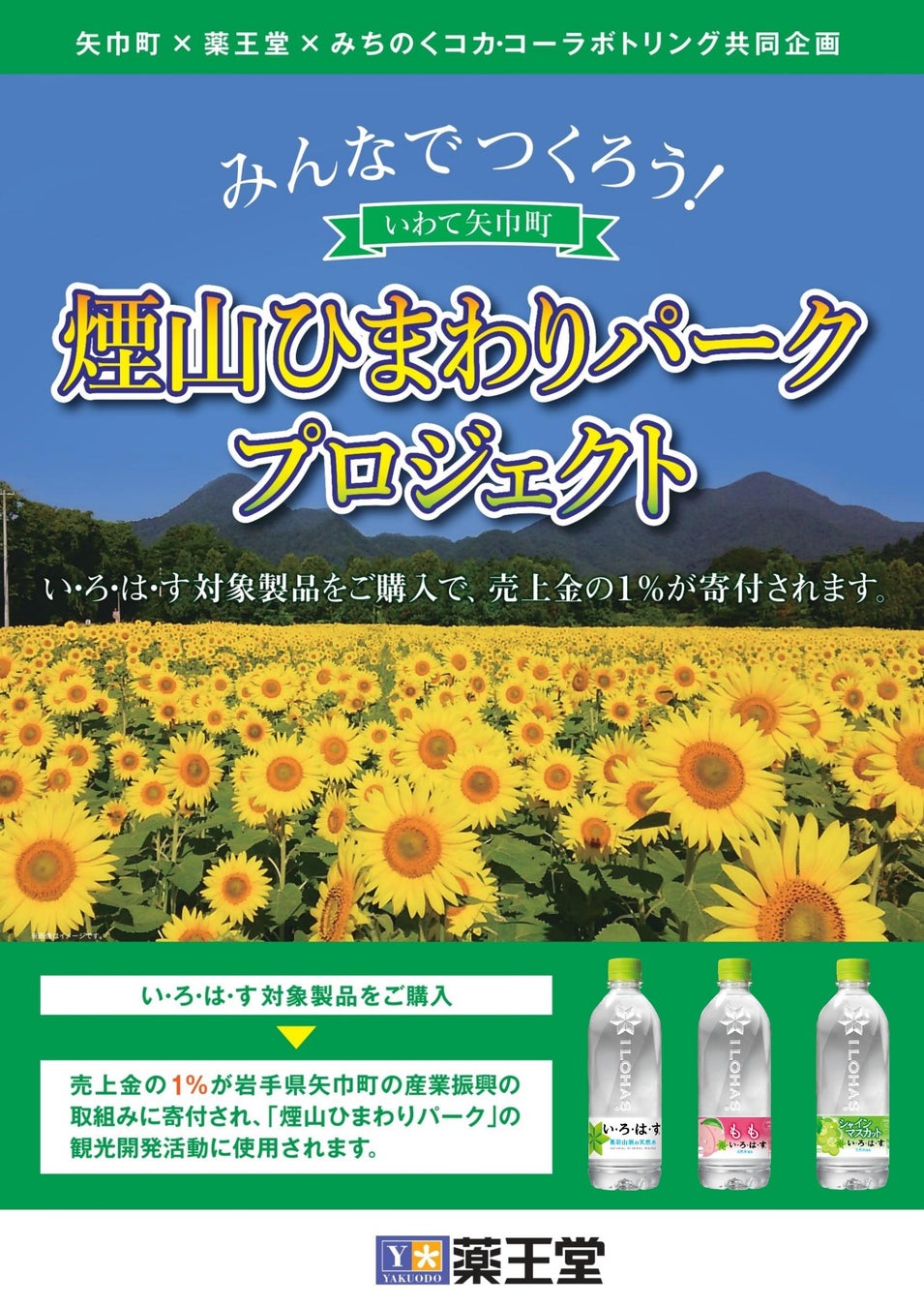 みちのくコカ・コーラボトリング、薬王堂との共同キャンペーン「みんなでつくろう!煙山ひまわりパークプロジェクト」の売上の一部を矢巾町へ寄付