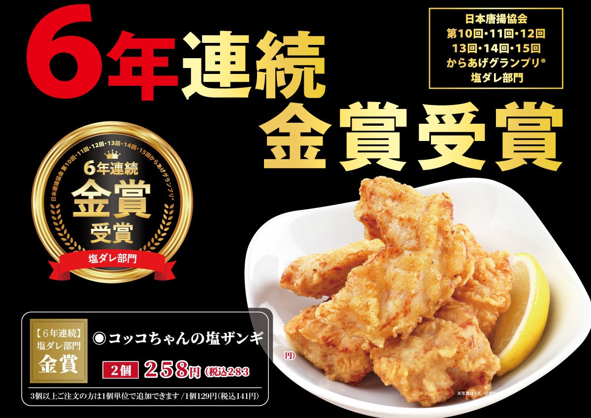 【快挙!】「焼鳥ダイニング いただきコッコちゃん」の塩ザンギが、日本唐揚協会第15回からあげグランプリ®塩ダレ部門において、「6年連続」金賞受賞!