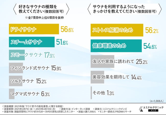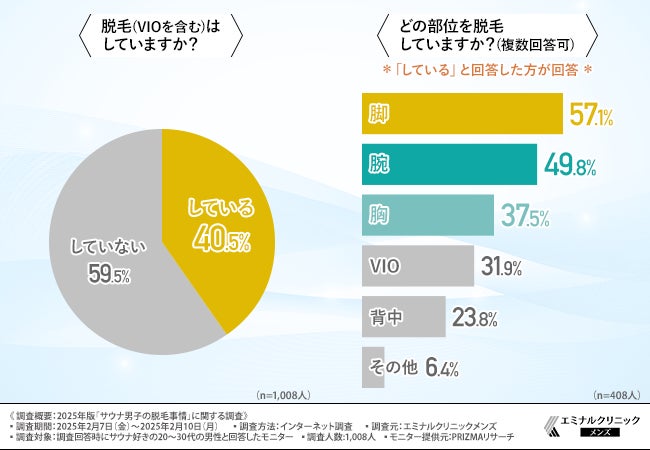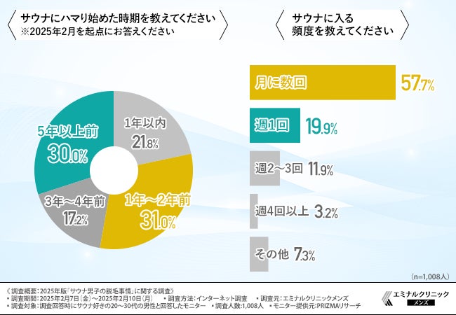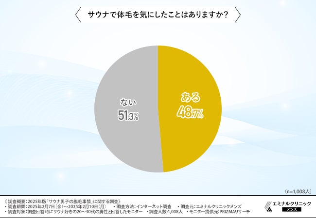 今回、メンズ専用脱毛クリニック・エミナルクリニックメンズは、サウナ好きの20~30代の男性を対象に2025年版「サウナ男子の脱毛事情」に関する調査を実施しました。