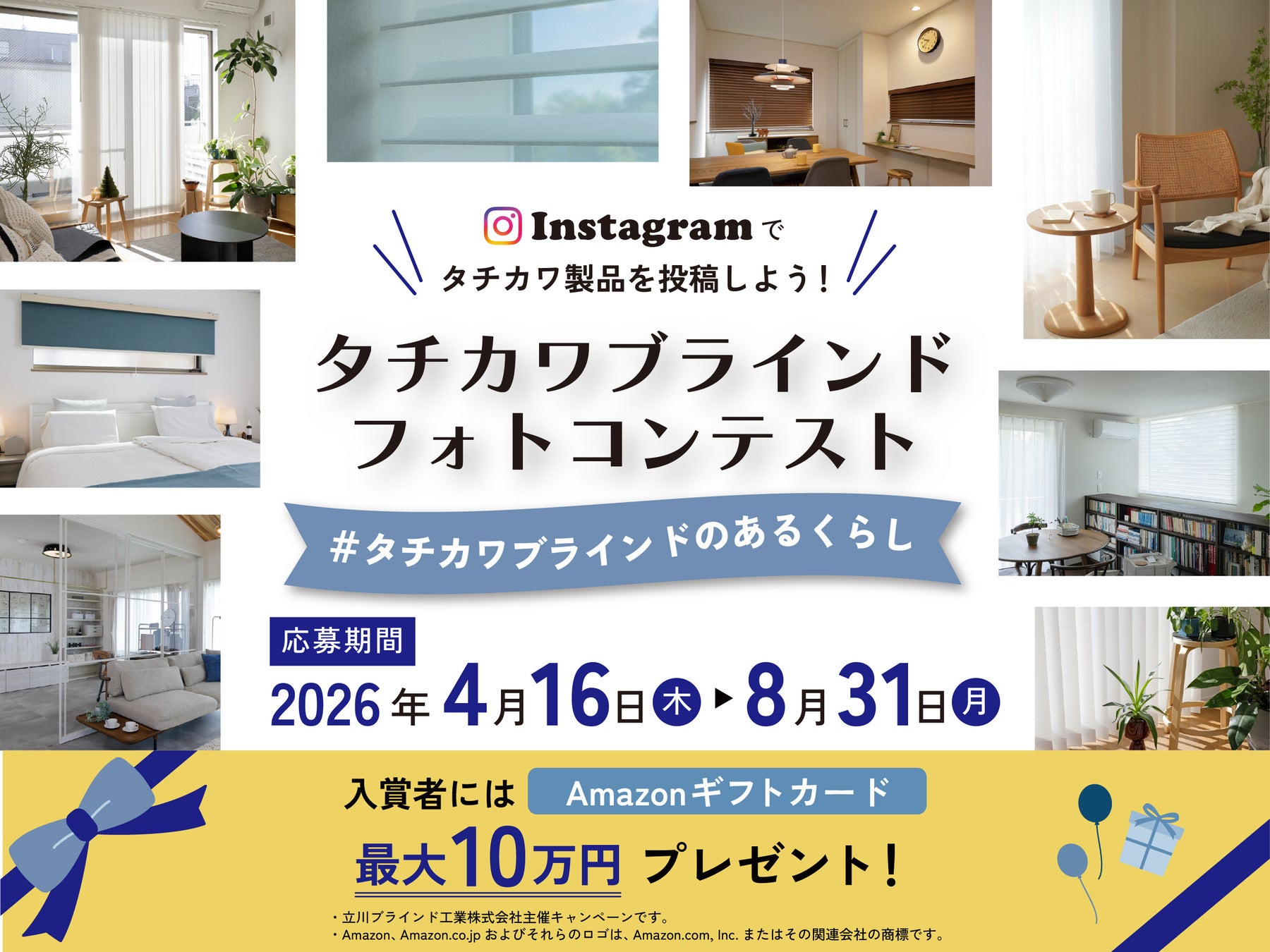 立川ブラインド工業株式会社(本社:東京都港区三田、資本金:44億7,500万円、代表取締役 社長執行役員:池崎久也)は、ブラインドや間仕切りの素敵な空間や暮らしのワンシーンをテーマに、2026年4月16日(木)から8月31日(月)までの期間、Instagramにてフォトコンテスト「#タチカワブラインドのあるくらし」を実施します。