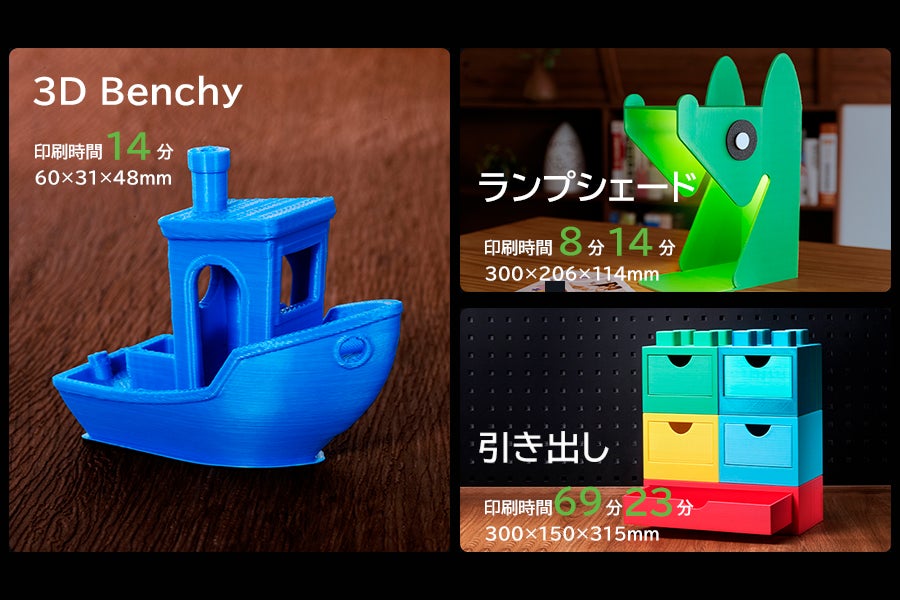 開放機でも最高速度は600mm/s、加速度は20000mm/s²のかつてない造形速度を実現しました。