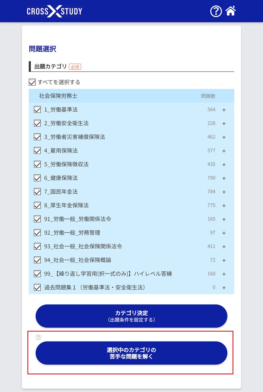 2)カテゴリ別の苦手な問題抽出機能で、手軽に復習ができる