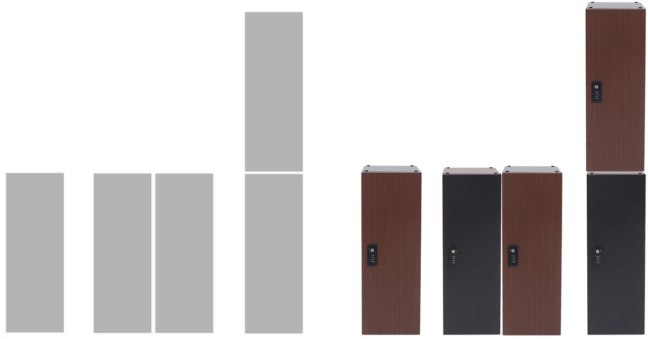 スタッキング連結用の加工があり、2つ揃えれば重ねて使うことが出来ます。直線のフォルムなので横並びに置いても無駄な隙間をつくらずすっきり、美しく設置できます。