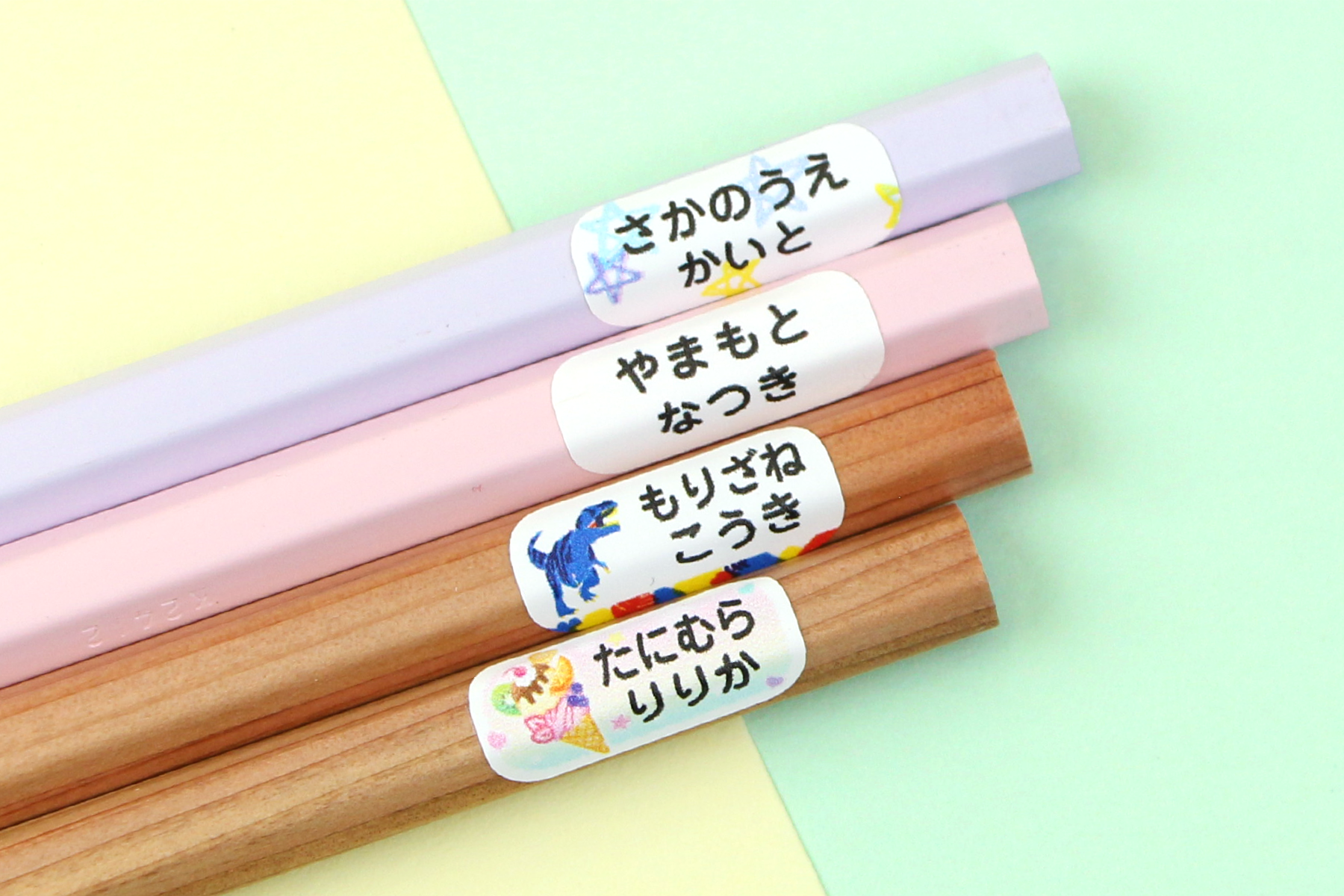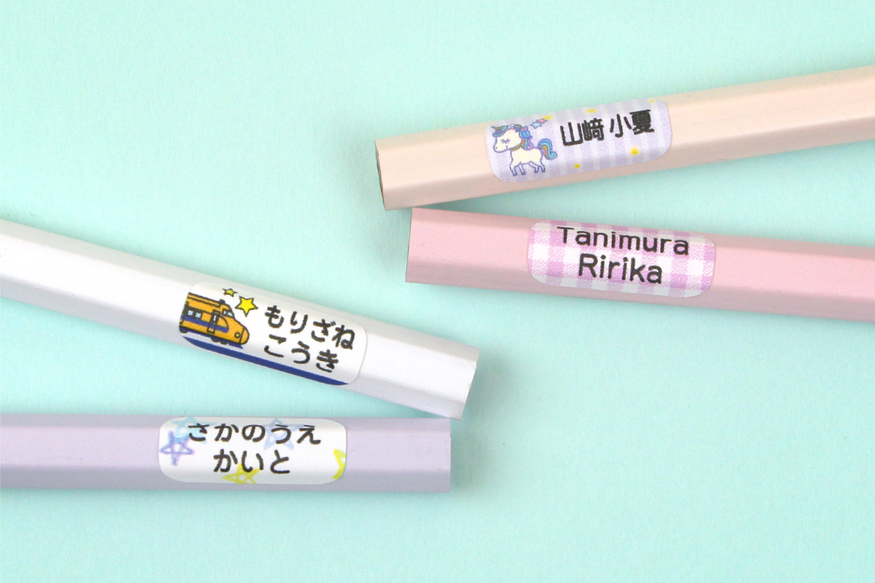 鉛筆のカーブ面にぴたっと貼れて、洗濯・水濡れにも対応。全70デザイン展開。