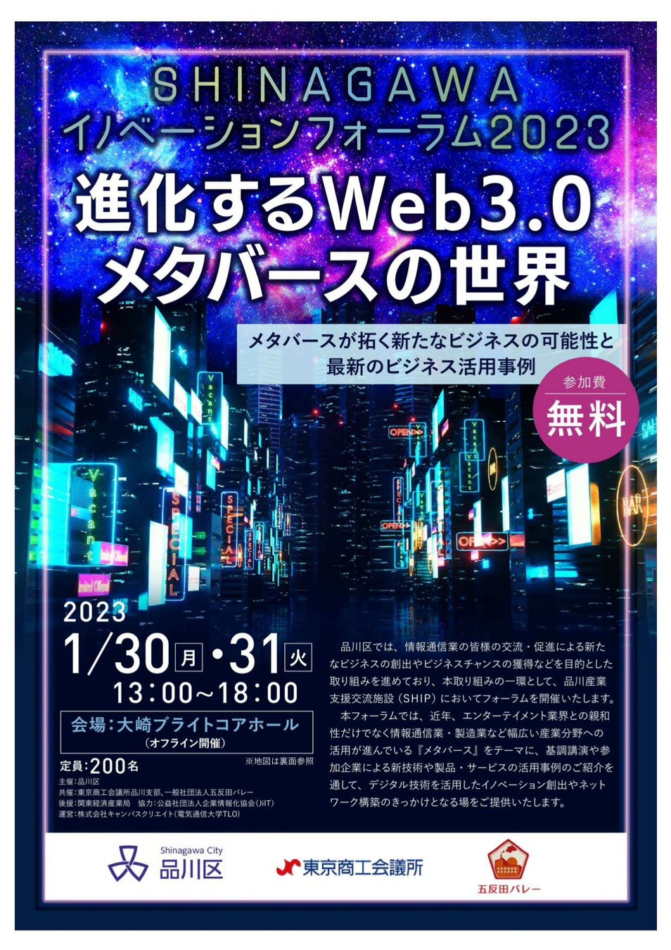 品川区は1月30日・31日、大崎ブライトコアホール(品川区北品川5、品川産業支援交流施設SHIP大崎ブライトコア3階)で「SHINAGAWAイノベーションフォーラム2023」を開催します。