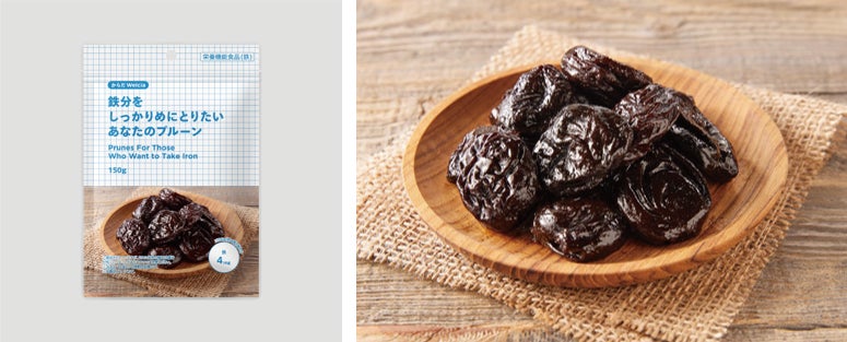 カリフォルニア産のプルーンを使用し、「からだWelcia」が初となる製造方法で、やわらかく食べやすいソフトタイプに仕上げました。また、1粒あたり鉄を約1.0mg含み、通常のプルーン比較して約10倍となっております※。カロリーを気にせず、1日に必要な鉄分を摂取できます。