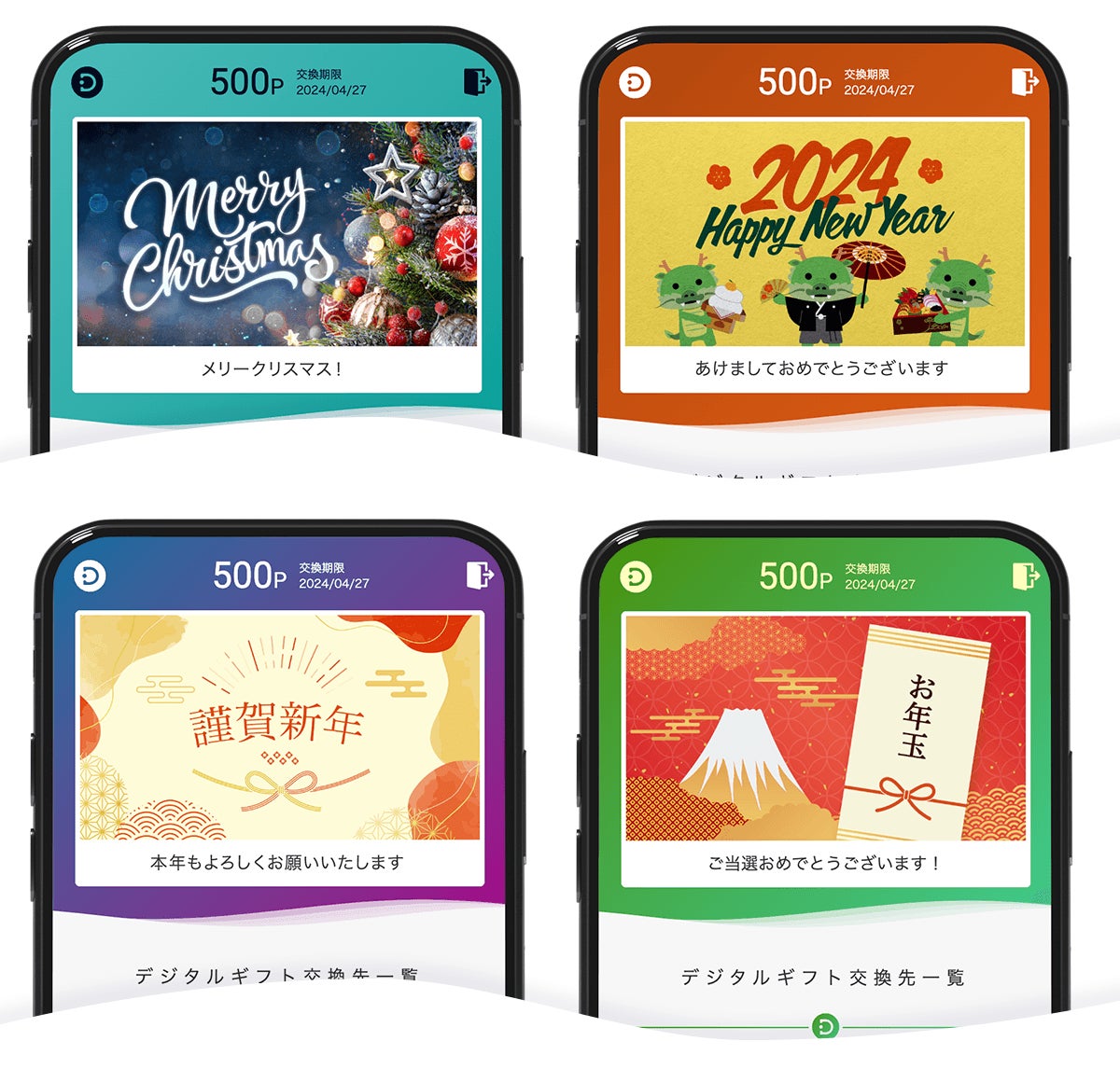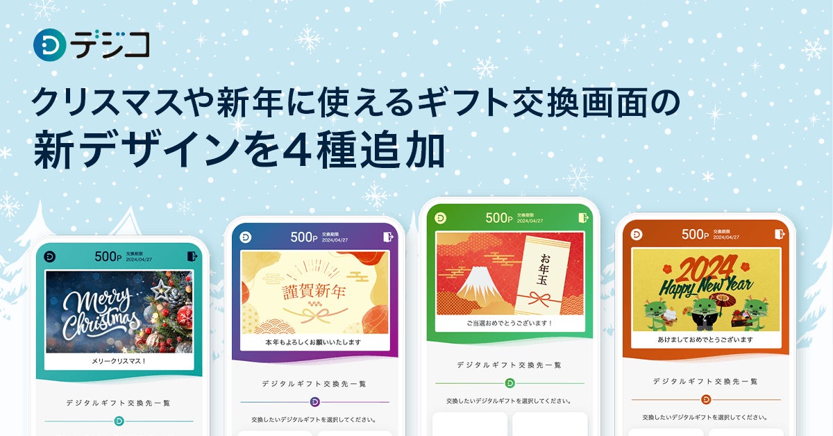 デジタルギフト「デジコ」、クリスマスや新年に使えるギフト交換画面の新デザインを4種追加