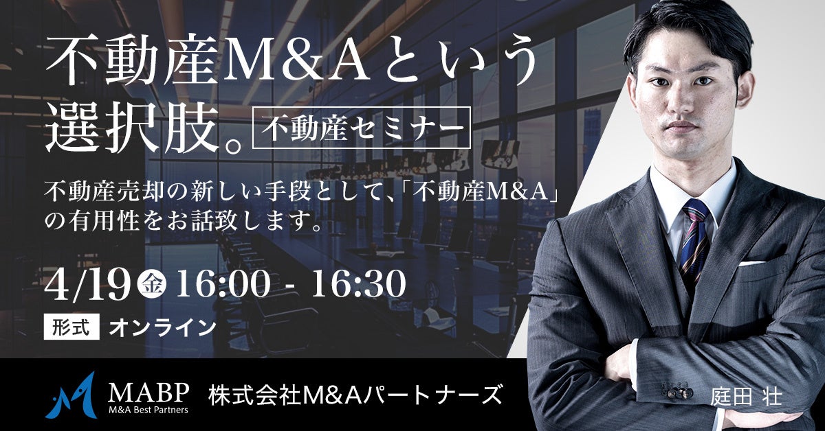 近年、企業が保有している不動産の売却手段として、「不動産M&A」という選択肢が増えていることから、本セミナーでは、不動産売却の新しい手段として、「不動産M&A」の有用性をお話いたします。