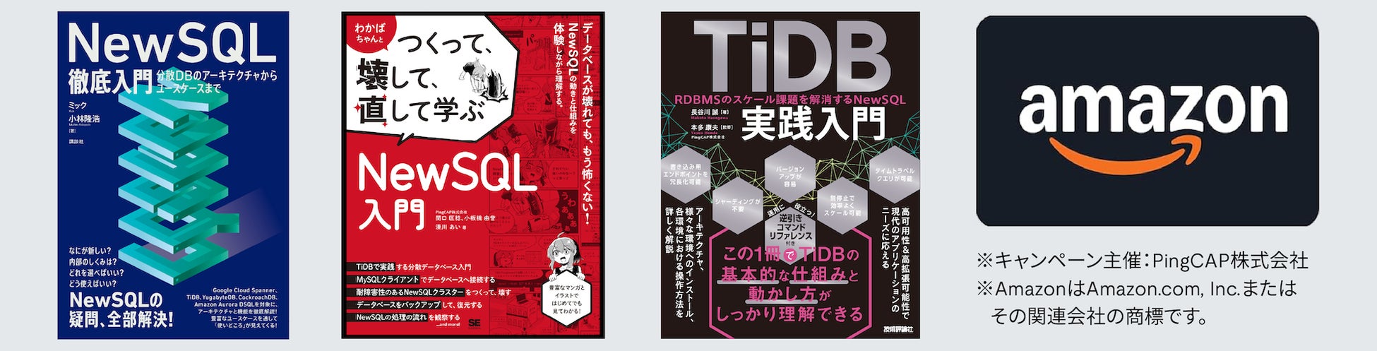 PingCAP株式会社 (本社:東京都千代田区、代表取締役社長:Eric Han、以下 PingCAP) は、2025年12月26日発売予定の書籍『NewSQL徹底入門 分散DBのアーキテクチャからユースケースまで』の出版を記念し、著者のミック氏 (『達人に学ぶDB設計徹底指南書』などの著者) および小林氏 (「NewSQL」関連連載の執筆者、『マルチクラウドデータベースの教科書』著者、『詳説 データベース』監訳者)を特別ゲストに迎えたオンラインイベントを開催します。
