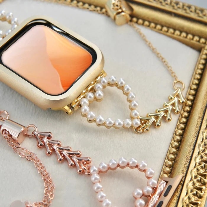 2、「ハーティーブレス」パールハートアップルウォッチバンド ¥3,280(税込)