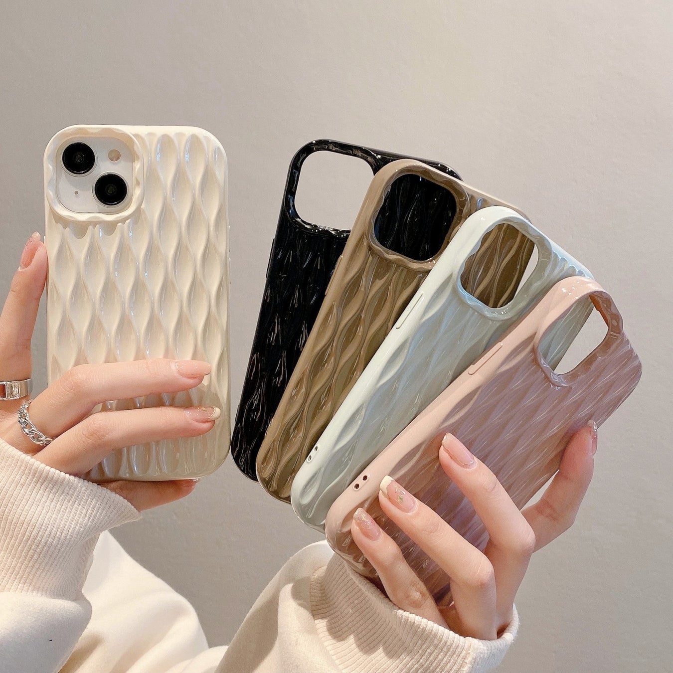 4、「フェミニンウェーブ」立体ウェーブストライプスマホケース ¥1,980 (税込)