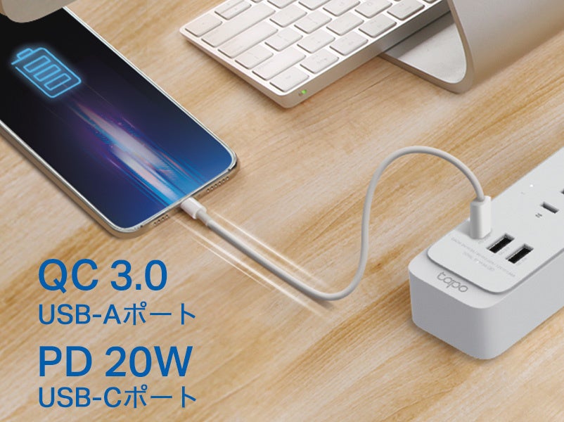 4つのコンセント口、USB-Aポート×2&USB-Cポート×1を備え、USBポートはそれぞれQC3.0とPD対応の急速給電に対応し、最大20W出力の給電をサポート。アプリから稼働時間を確認したりスケジュールやタイマーを設定することも可能。