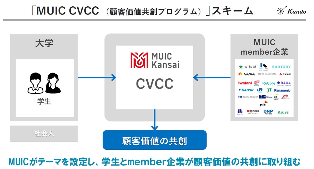 ⼀般社団法⼈関⻄イノベーションセンター(以下 MUIC Kansai)は、KANDO株式会社(以下 KANDO)と協働で学生起業支援プログラム「CVCC(Customer Value Co-Creation program/顧客価値共創プログラム)」(以下CVCC)を本格始動いたします。それに伴い、5月2日に3校合同初回オリエンテーションを実施いたしました。