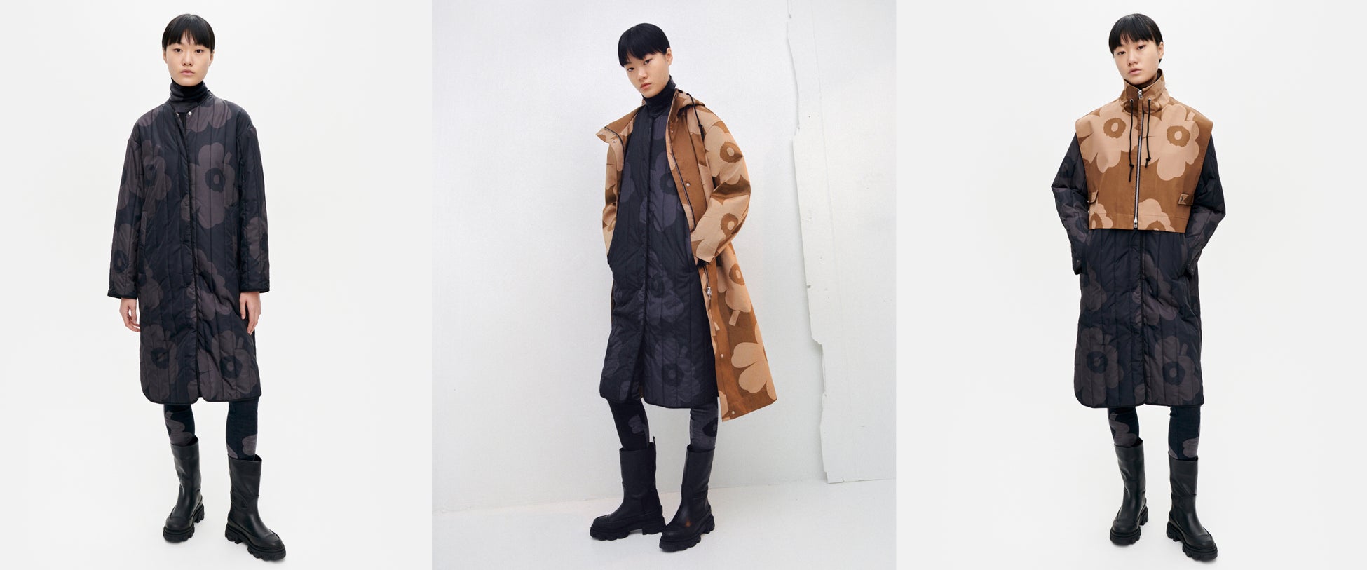 株式会社ルックが展開するフィンランドのデザインハウス マリメッコ(Marimekko)は、インナー/アウターの両方として着まわせる新しいコンセプトのアウターシリーズを発売。ブランドの象徴とも言えるウニッコ(Unikko/ケシの花)柄を大きくあしらった中綿入りコートはショート丈、ロング丈の2種類、カラーはブラックとオフホワイトの2色で登場。全国のマリメッコストア、各オンラインストアにて数量限定で販売中。