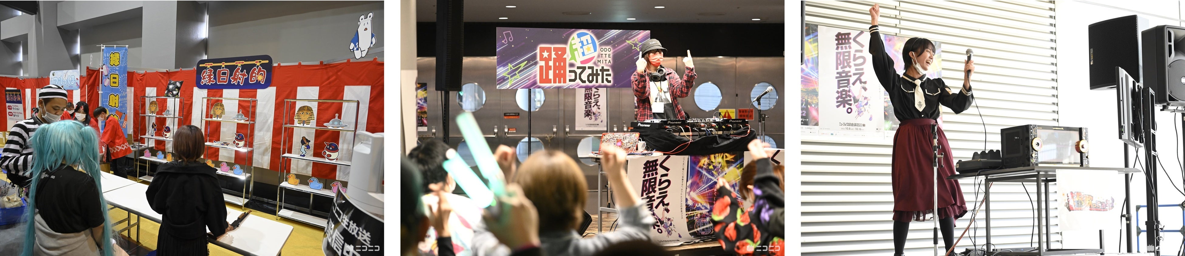 超パーティー開演までの時間は、さいたまスーパーアリーナの広い会場を利用した縁日などの様々な企画ブース、コラボドリンクやフード店舗、物販などの出展がリアル参加者の心を弾ませた。「超踊ってみたブース」では多くの参加者がダンスレッスンやDJタイムを楽しみ、「超ストリートピアノ」では、様々なピアニストたちが超絶技巧を披露して来場者を沸かした。