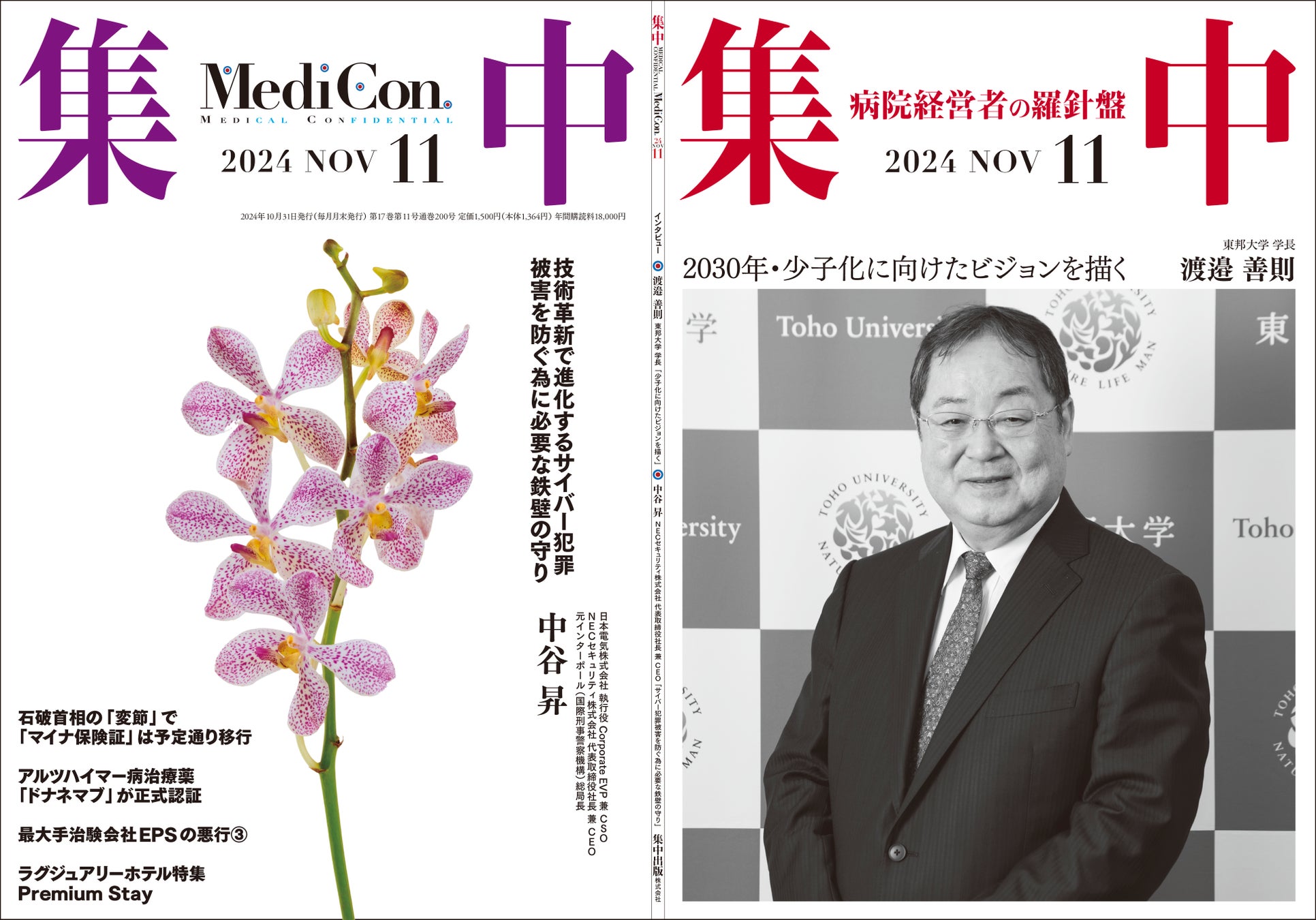 医療情報誌 月刊『集中』2024年11月号 巻頭インタビュー 渡邉 善則 東邦大学 学長/集中OPINION 中谷 昇 NECセキュリティ株式会社 代表取締役社長 兼 CEO 他