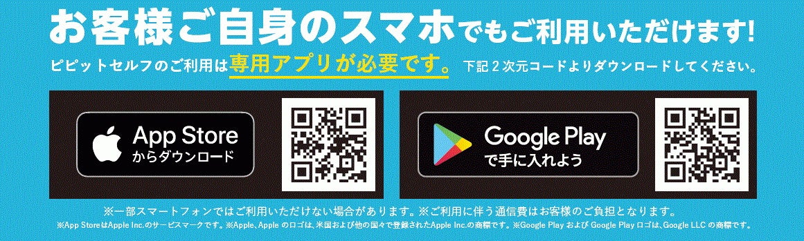 ・お客様ご自身のスマートフォンでもご利用いただけます。ご利用は専用のアプリが必要ですので、ダウンロードをお願いします。