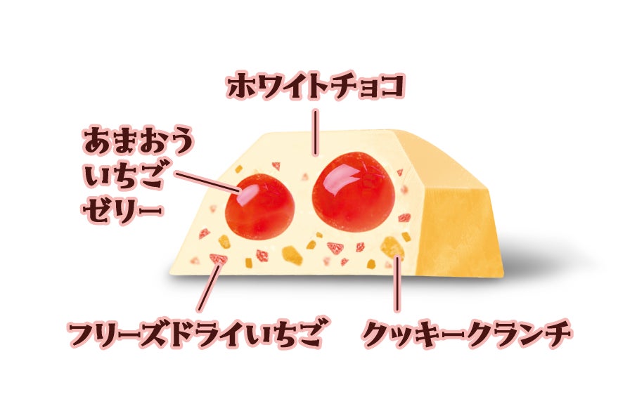 ・あまおういちごゼリーとフリーズドライいちご、クッキークランチが入った大粒ホワイトチョコレート