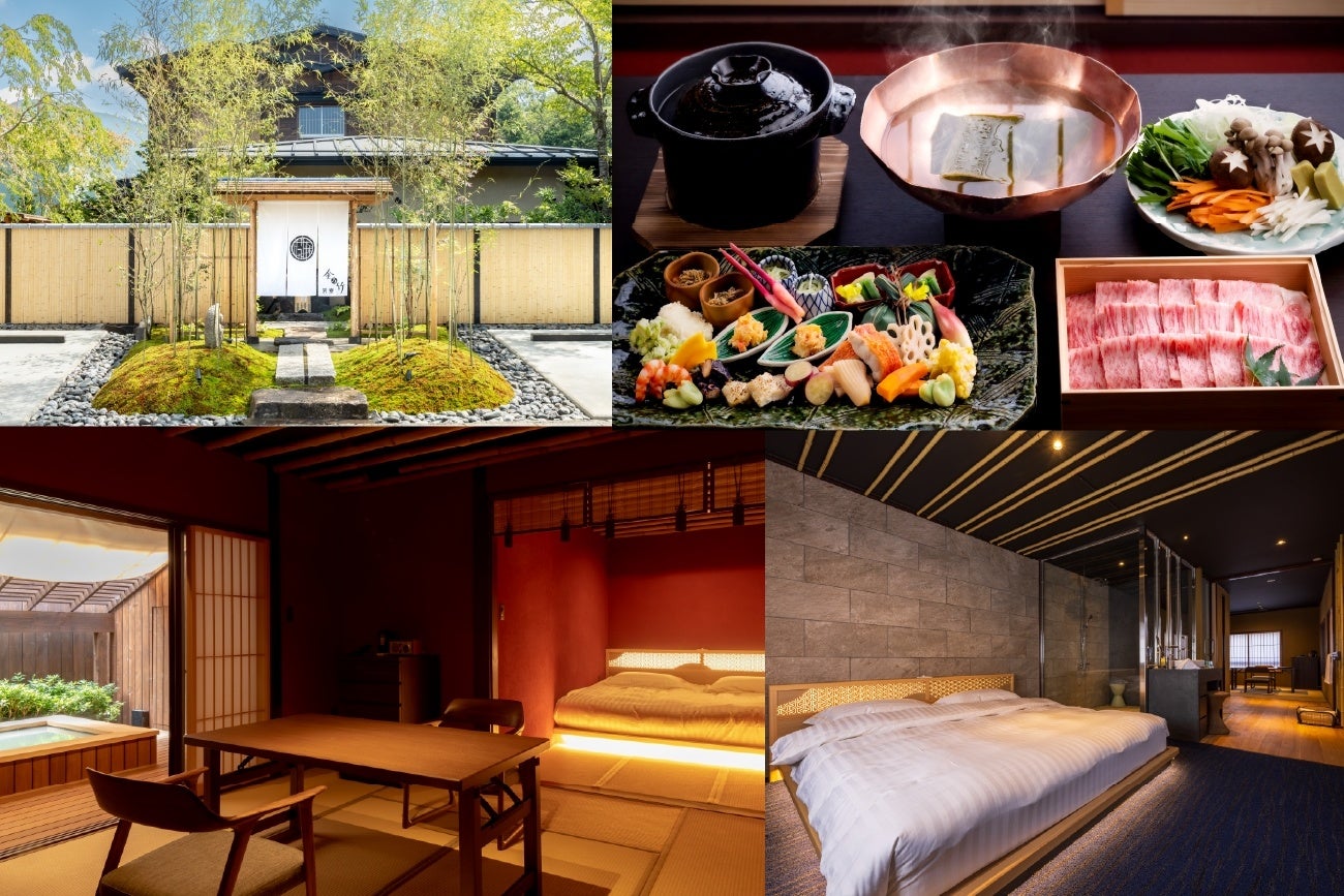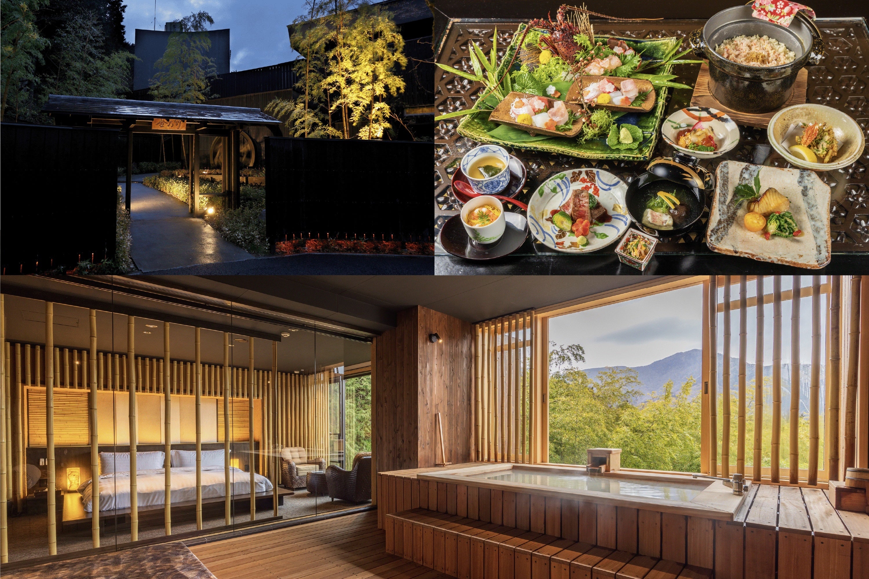 遊びを忘れない大人たちの隠れ宿、誰もが知っている かぐや姫のお話「竹取物語」をコンセプトにした旅館です。全室露天風呂付の客室は95㎡~133㎡とゆとりある空間となりフラットとメゾネットタイプなど全9室あり、食事はすべて部屋食です。チェックイン・チェックアウトもお部屋で行いますので、他のお客様と接触をしないプライベート重視の非接触スタイルとなります。
