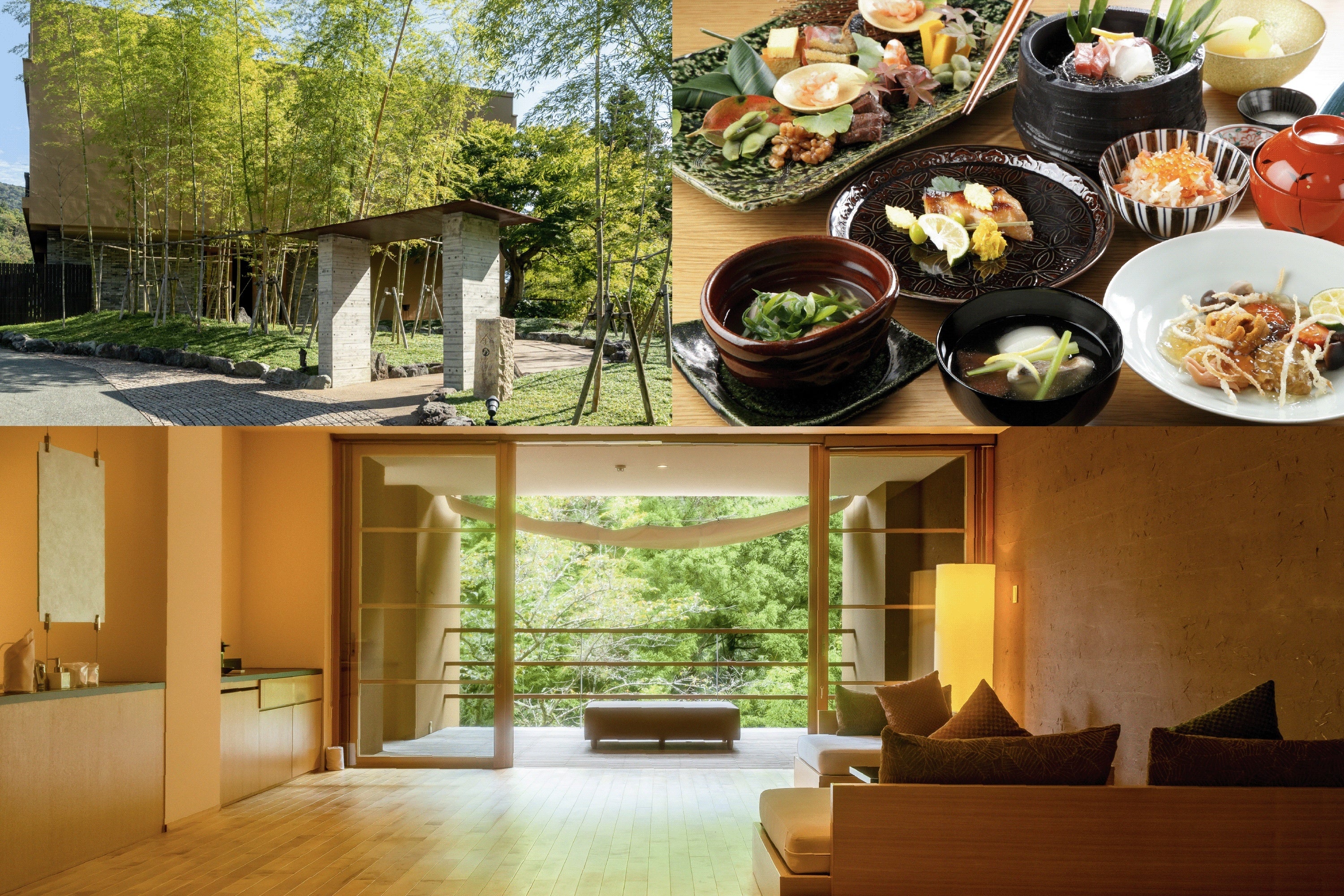 2022年8月4日オープン、当社グループの最高級ブランド「金乃竹」のデイユース体験を提供するデイユース施設です。客室数は全6部屋、この度2階の客室4室を2室に統合し43㎡とゆとりある空間として寝室やダイニングを備え、1階には専用露天風呂をご用意しています。1階の4部屋は客室に露天風呂を備えており各部屋すべて造りが異なっております。お食事は全室で黒毛和牛のしゃぶしゃぶ御膳をお部屋でお召し上がりいただき、チェックイン・チェックアウトもお部屋で行いますので、他のお客様と接触しないプライベート重視の非接触スタイルとなります。