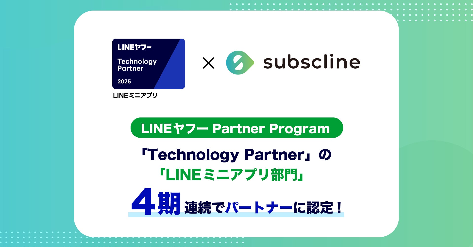 【サブスクライン】「LINE ヤフー Partner Program」において、4期連続で「Technology Partner」の「LINEミニアプリ部門」 に認定