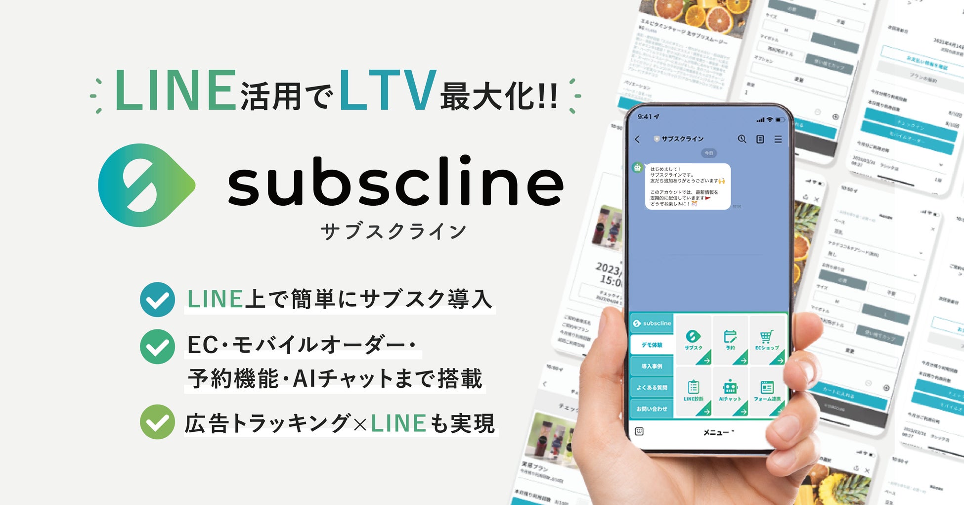 株式会社サブスクラインは、「LINE公式アカウント上の友だち追加前における流入元経路情報・広告情報まで分析できる広告トラッキング連携」をはじめ、「LINE上でサブスク」「LINE上でモバイルオーダー」「LINE上でEC」「LINE上でAIチャット(ChatGPT連携)」 などのサービスをオールインワンに提供するSaaS「サブスクライン」の提供を行っている点に加え、自社の開発チームにより、パッケージ機能のカスタマイズや個別開発にも対応でき、各クライアントのニーズに合わせたオーダーメイドを叶えられる点を強みとしています。