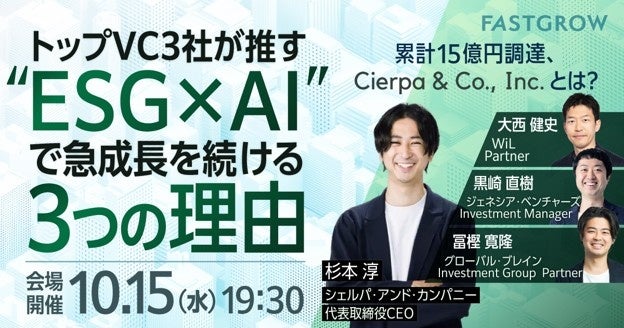 新オフィスへの移転を記念し、テクノロジー領域で活躍中の起業家・経営層と、若手経営人材をつなぐビジネスコミュニティ「FastGrow」のプロデュースのもと、2025年10月15日(水)にイベントを開催します。シリーズBラウンドの資金調達に引き続き参画したWiL(リード)、グローバル・ブレインに加え、ジェネシア・ベンチャーズという国内トップVCの3社からゲストをお招きし、当社事業やサステナビリティ業界の展望などについてお話しします。また、イベント後半では当社社員との交流会も予定しています。詳しくは以下の記事をご覧ください。
