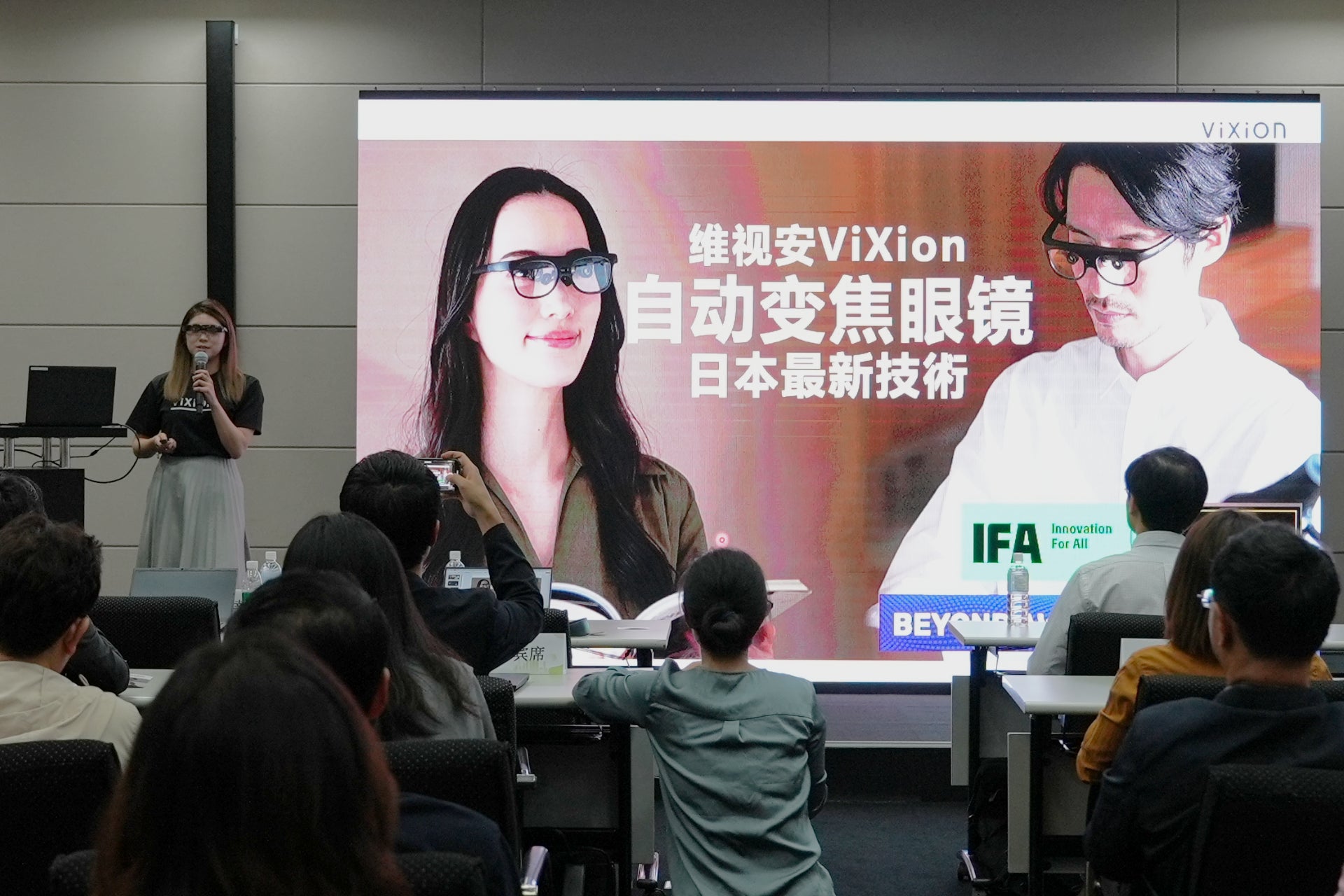 イベント会期中の6月12日に開催されたJETRO公式セミナーでは、ViXionを含む日中4社の企業代表が登壇。当社からはAPAC戦略および事業開発を担当するグローバル事業部の竹田が登壇し、世界および中国における近視・老眼の進行、それに伴う社会的・経済的影響、そして当社が提供する「オートフォーカスアイウェア ViXion01S」や「オートフォーカスアイウェア ViXion01」をはじめとした視覚サポートプロダクトの可能性について講演を行いました。