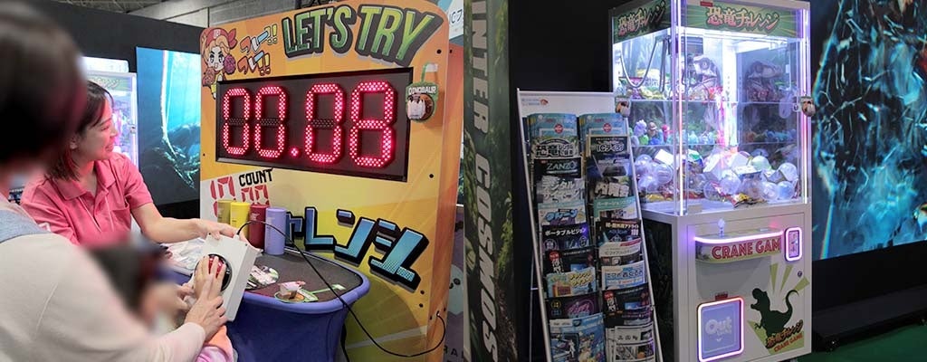 時間をピタリと止めるゲームができる「チャレンジサイネージ」や、お好みのデザインで制作できる「オリジナルクレーンゲーム」など、参加型で楽しめるコンテンツを出展。実際に挑戦していただくことで、販促イベント等での体験型演出の可能性をご体感いただきました。