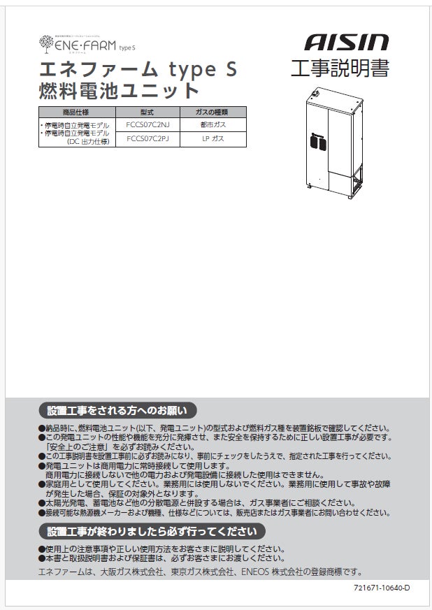 ―エネファーム type S 燃料電池ユニット 工事説明書―
