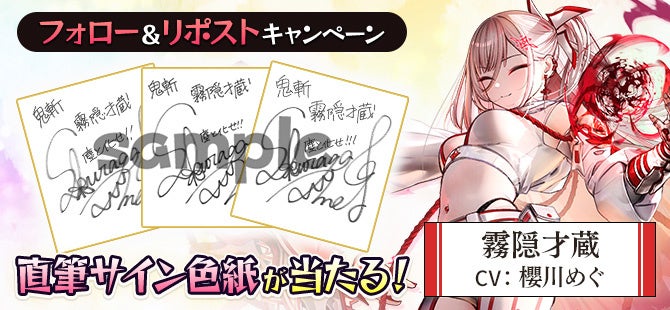 「霧隠才蔵」のCVを担当した櫻川めぐ氏の直筆サイン色紙を抽選で3名様にプレゼントするリポストキャンペーンを2024年12月18日(水)より実施中です。