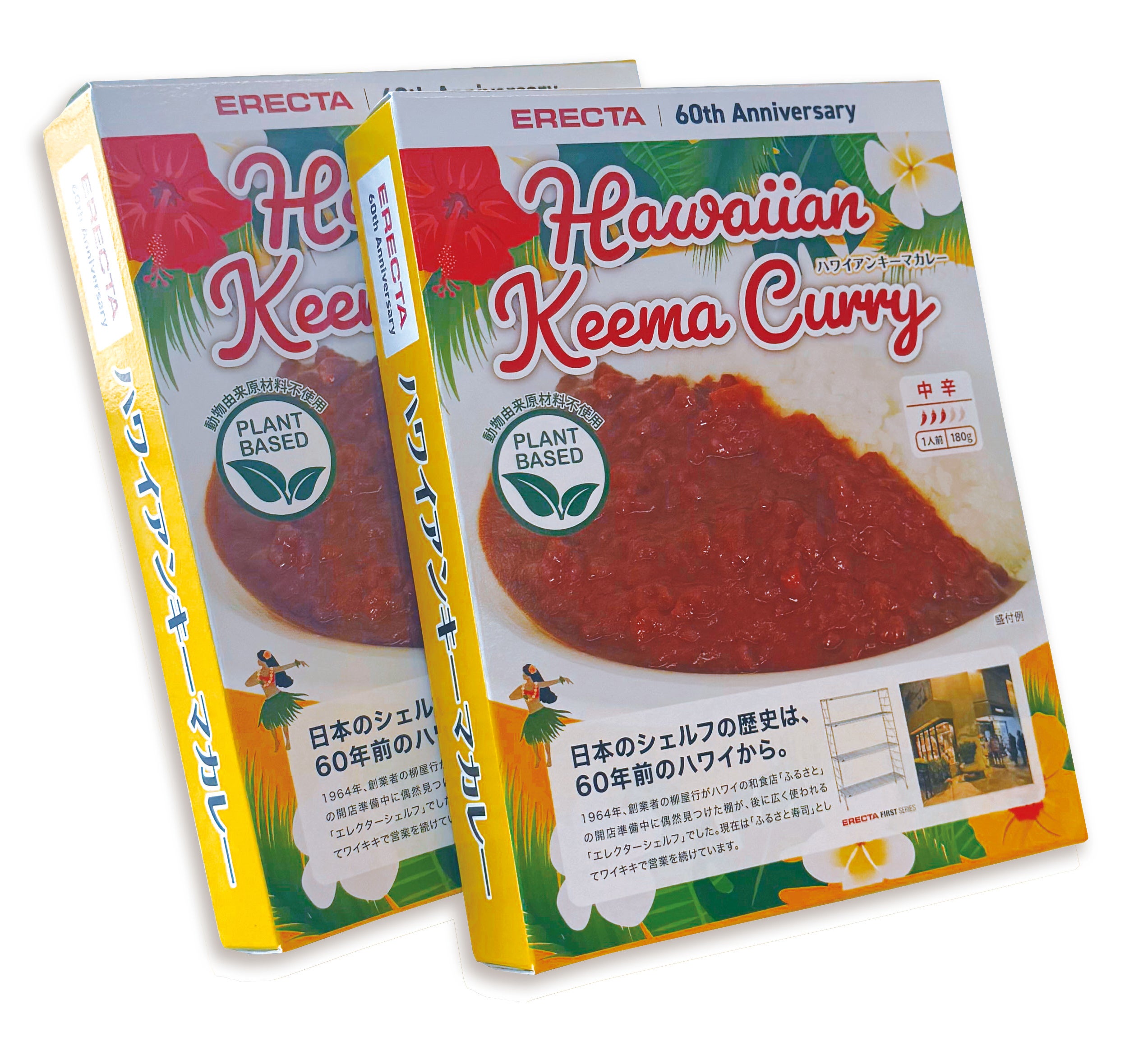 今回プレゼントするキーマカレーは、エレクター設立60周年の節目にあわせ、ハワイをイメージして開発したオリジナルレトルトカレーです。