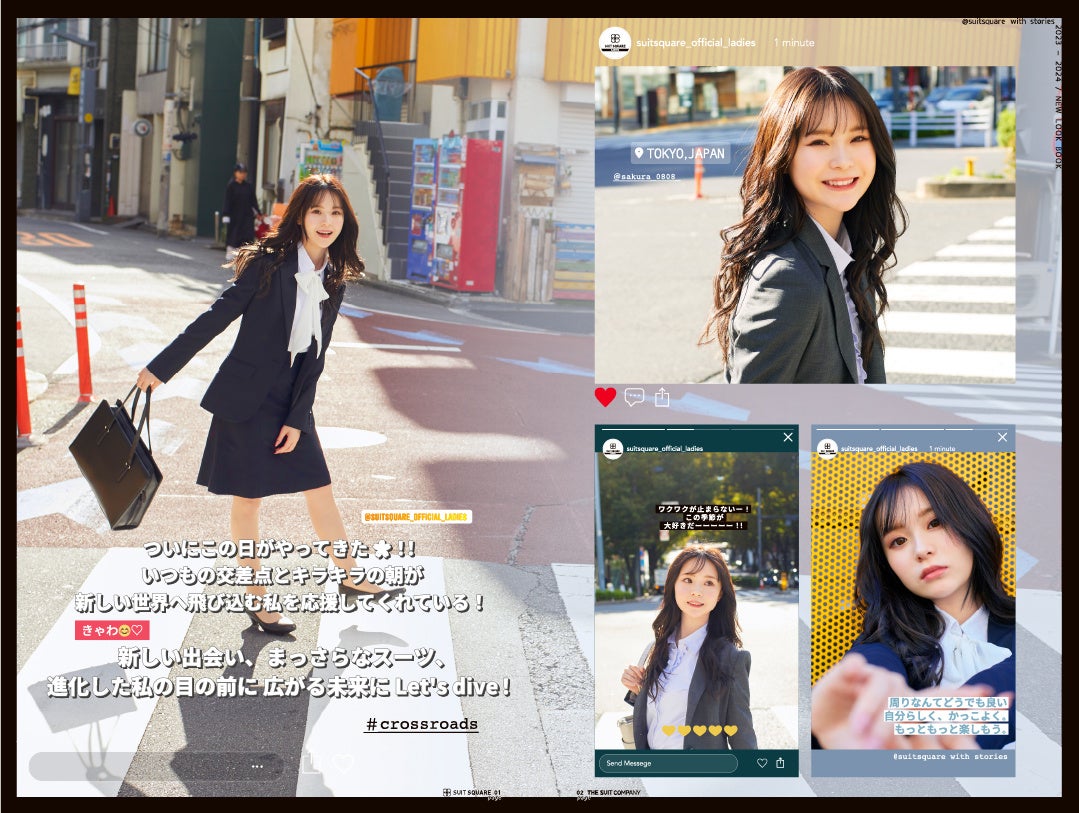 スーツスクエアでは、これまでスーツの着こなしや着用シーンに合わせたコーディネートなど情報発信を行い、スーツに関する疑問や不安を解消すべくサポートしてきました。12月7日(木)より新たに公開された新入学生と新社会人向けのビジュアルでは、学生のライフスタイルが大きく変わる人生の転機を“#ボクらの交差点。”として表現し、リアルな学生の心情に寄り添うビジュアルを目指しています。