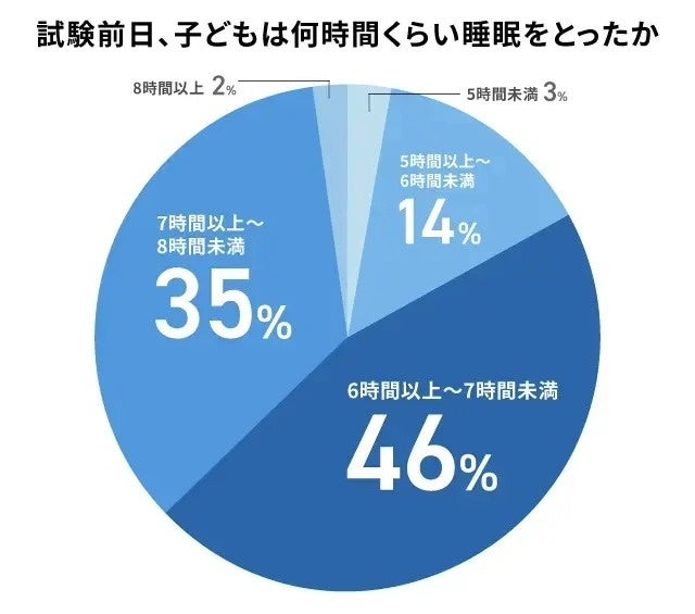 ただし、「5時間未満」と回答した家庭も3%存在し、「寝ようとしても緊張で寝つけなかった」「勉強を続けていた」などの背景が想像されます。