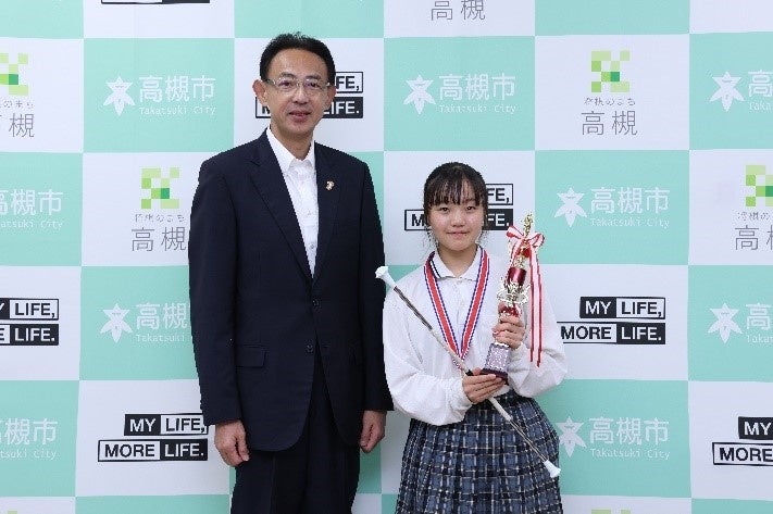 この日、市役所に訪れた阿久根さんは、「昨年の大会は2位で悔しい思いをしたので、今回1位を取れてよかったです」と話し、濱田市長は、「全国大会優勝おめでとうございます。高槻市から世界に羽ばたいてくれることを光栄に思います。ぜひ楽しんできてください」と激励しました。