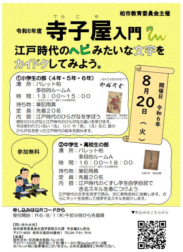 【8/20開催】令和6年度寺子屋入門~ボクもワタシたちも楽しめる江戸時代の古文書~