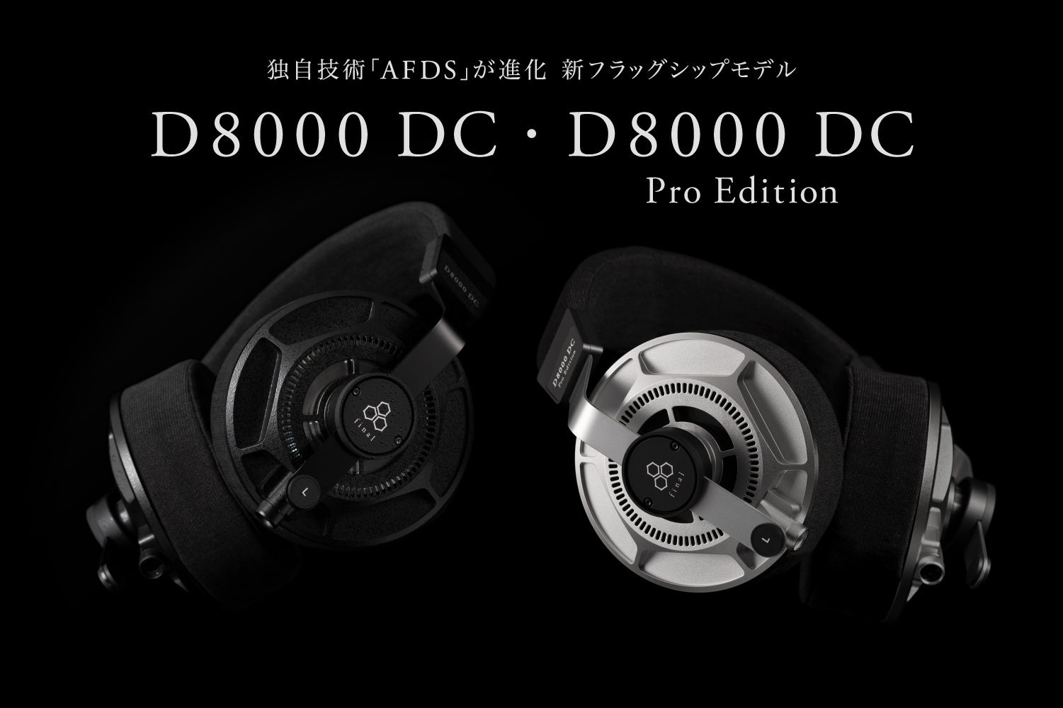 DCの名称は、音楽用語のダ・カーポ「Da Capo」(譜面の最初に戻るという意味)に由来しています。 「D8000 DC」は、発売より7年が経過し、国内外で累計2000台を超える出荷のロングセラーとなった旧モデルD8000を、「D8000 DC Pro Edition」はD8000の繊細な音質をそのままに、一般的なコンシューマーより大きめの音量で聴取したいという録音のプロからの要望を受けて誕生したD8000 Pro Editionを、それぞれ一から全て見直し、新たに開発しました。