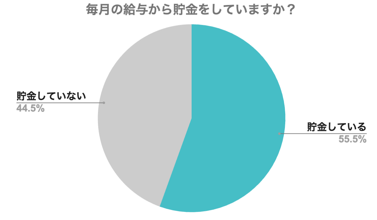 毎月の給与から貯金をしていると回答した人は、全体の半数以上を上回る55.5%という結果でした。