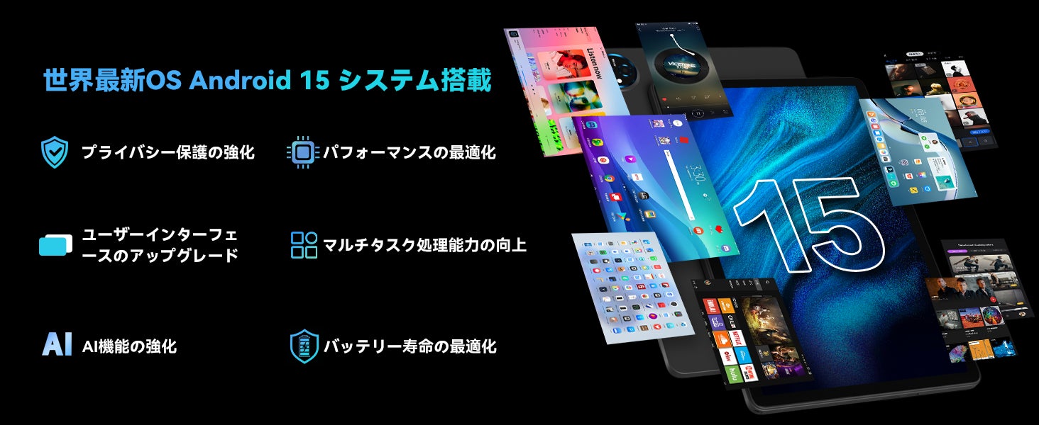 セキュリティ強化&最適化された次世代OSで高速処理がさらに進化!Androidタブレットの中でも先進的なAI機能により、高速なアプリ起動と直感的なユーザーインターフェ