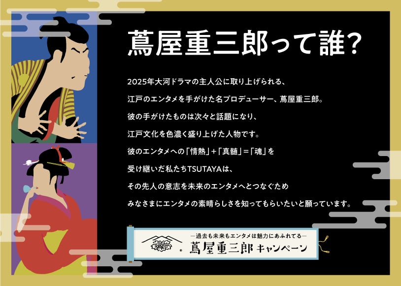 2024年TSUTAYA冬のキャンペーン!2025年大河ドラマの主人公・TSUTAYAの由来にもなった江戸時代の名プロデューサー蔦屋重三郎を称え「蔦屋重三郎キャンペーン」が12月5日よりスタート