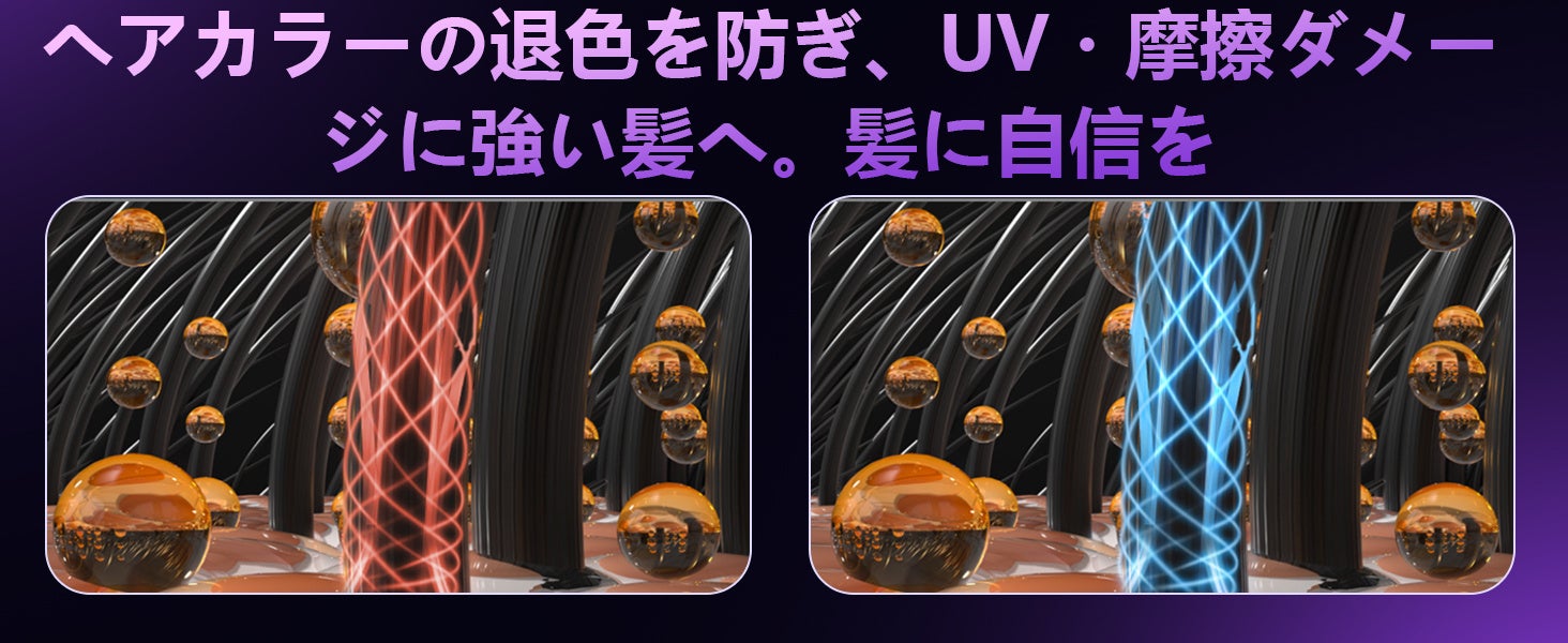 【髪に潤いとツヤを与えるネガティブイオン技術】