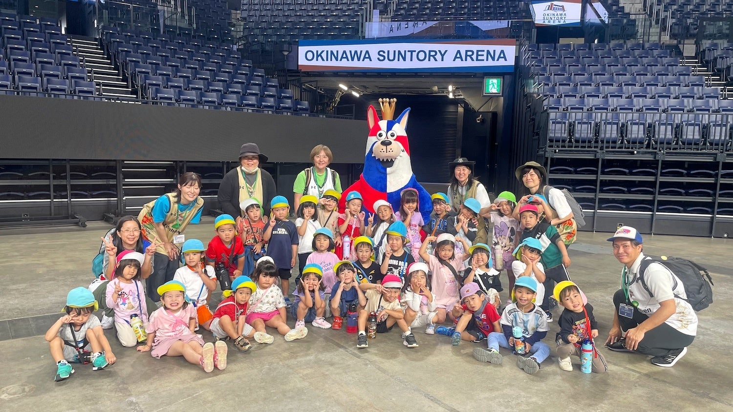 沖縄アリーナ株式会社では、グループ会社である沖縄バスケットボール株式会社の地域活動「おおきなわ」の一環として「沖縄サントリーアリーナ見学・交流会」に協力し、山内保育所(沖縄市)の園児および職員の皆さまをお迎えしました。