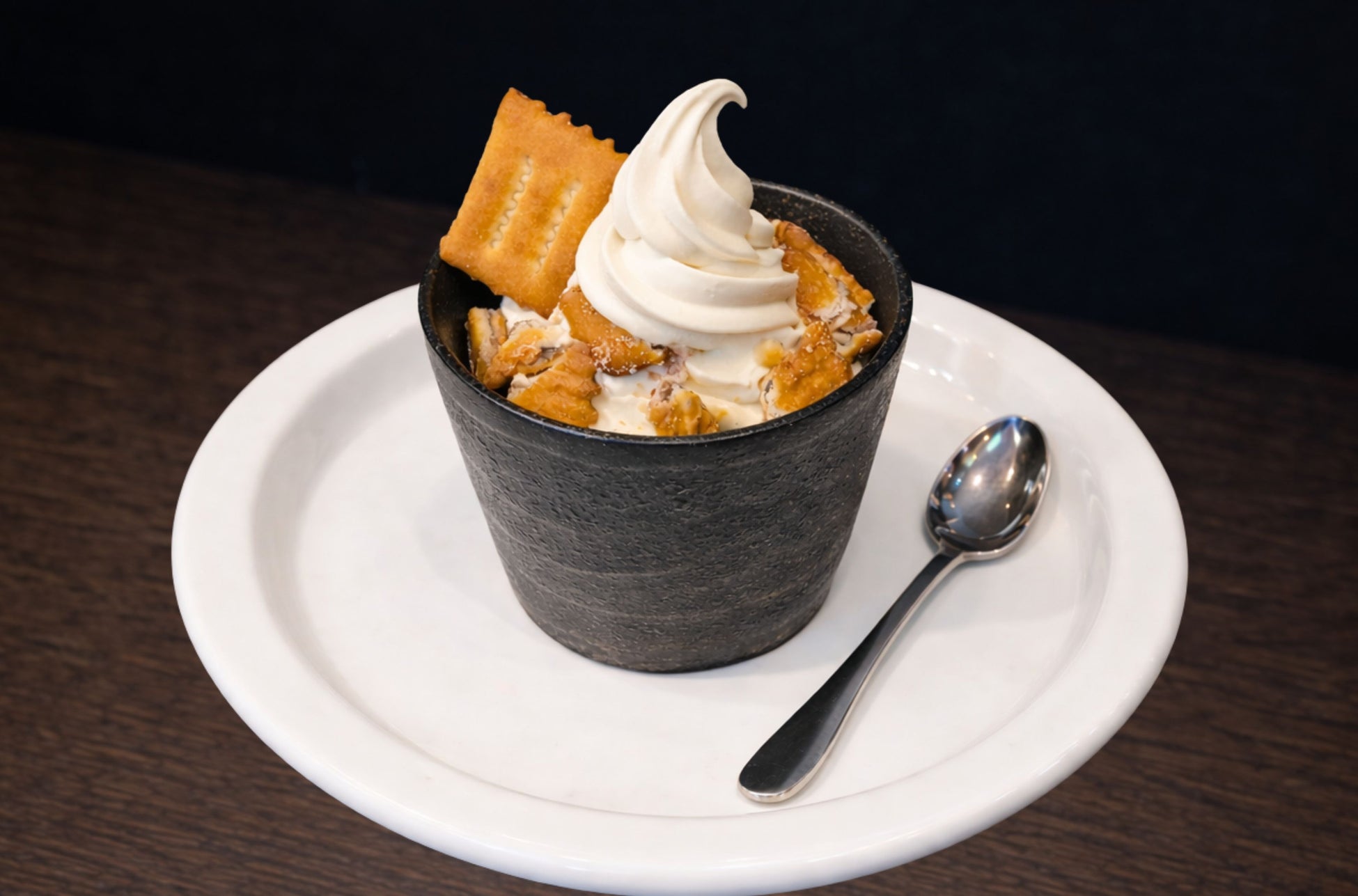 濃厚ソフトクリームに「しるこサンド」をトッピングした限定メニュー。