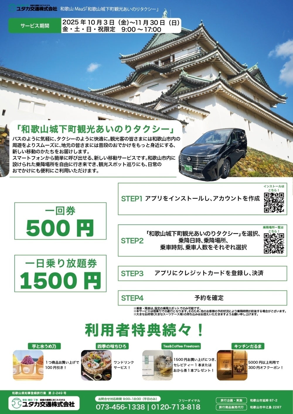 ユタカ交通、「和歌山城下町観光あいのりタクシー」10月3日スタート